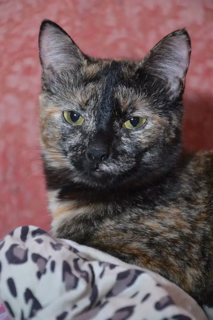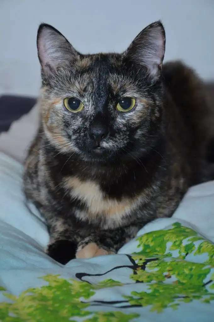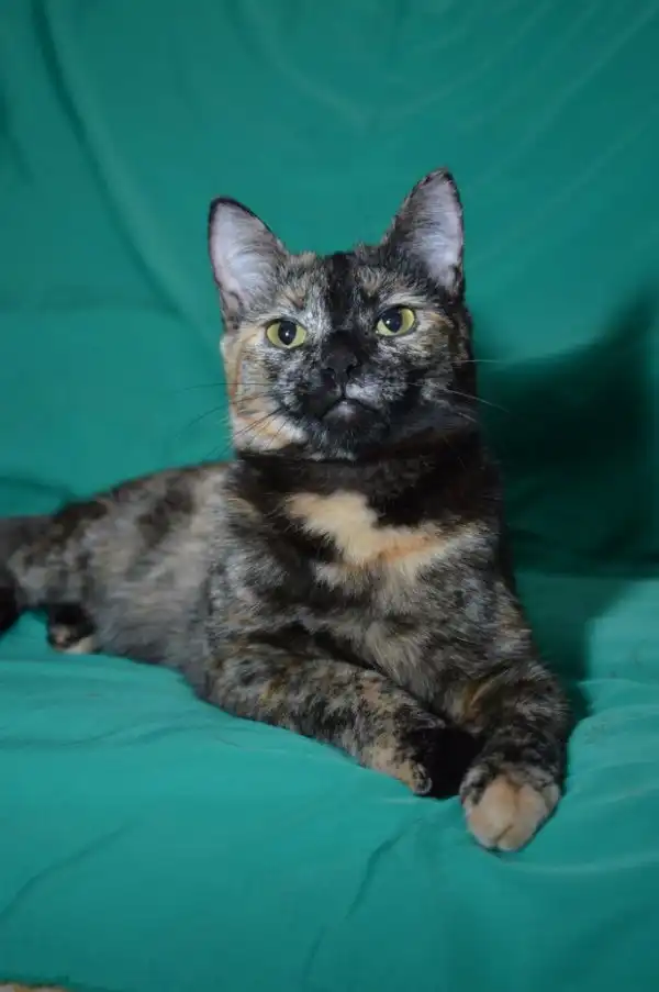 У неё очень необычный окрас: черепаха в рыжую полоску и зелёные глазки. :thumbup: Совершенно не агрессивна, когти не выпускает. Лоток на отлично. Стерилизована. Возраст примерно 8-9 мес. Отдается единственным питомцем в спокойную обстановку.