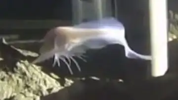 очертания скелета были видны сквозь кожу. На видео рыба плывет, раскинув свои длинные плавники как крылья у самолета.