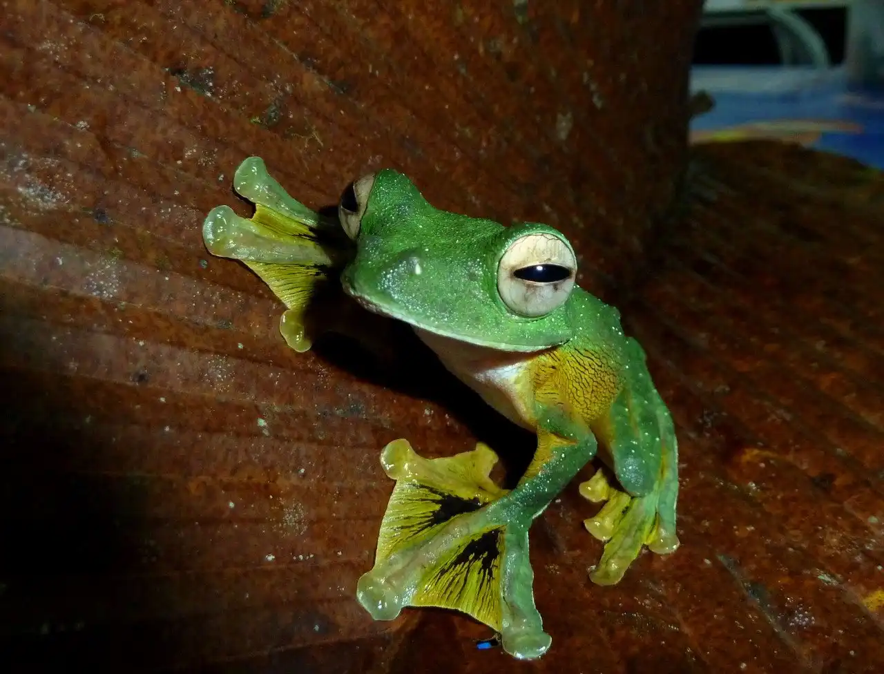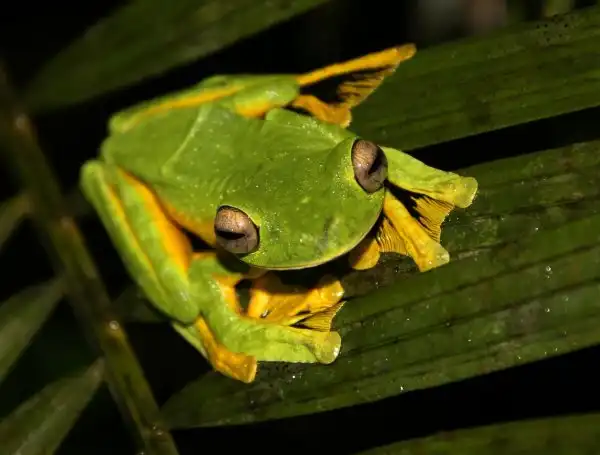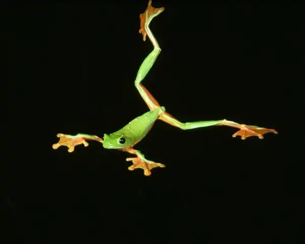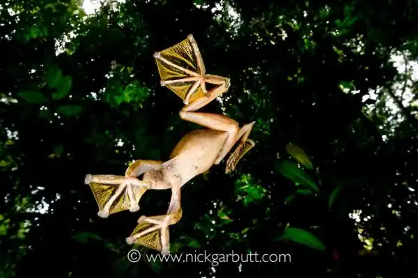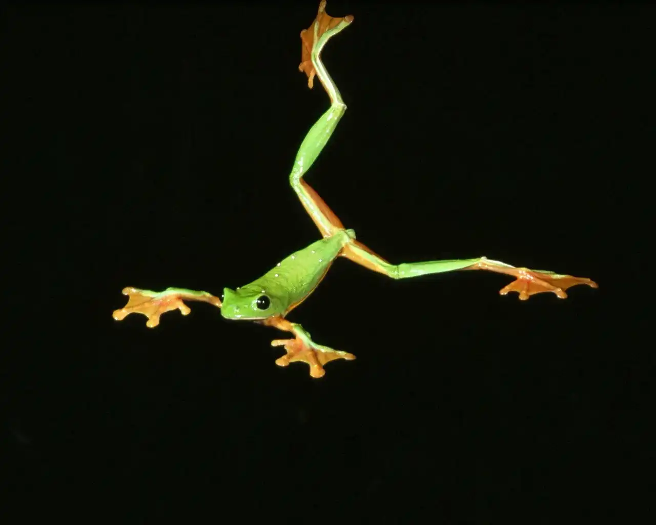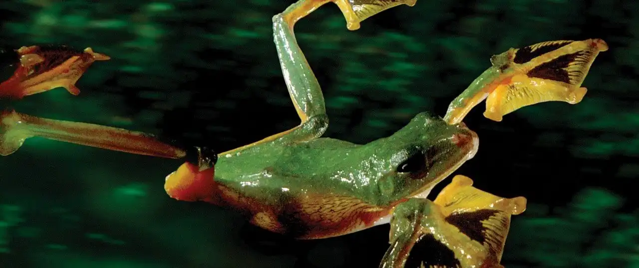Чернолапый веслоног (Rhacophorus nigropalmatus) — лягушка, обитающая в густых тропических лесах Малаккского полуострова, Таиланда и Индонезии. Эволюционируя, она приобрела способность не только прыгать и плавать, но и парить в воздухе.