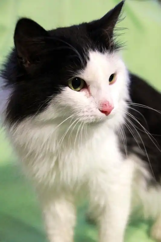 Квентин - черно-белый длинношерстный котик небольших размеров, возраст примерно 2 года. Найден на улице.. Очень ласковый, любит внимание, может долго лежать на коленях и мурлыкать. Добрый, милый, хорошо уживется с другими кошачьими. Питается готовыми кормами, пользуется лотком. Кастрирован.