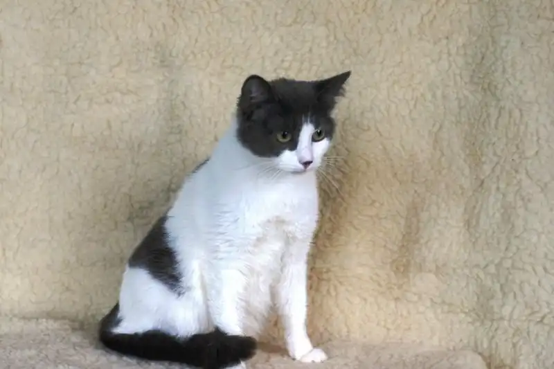 Таис - кошечка окраса голубой биколор с милым пятнышком на носике. Найдена на улице. Кошечка немного робкая, побаивается незнакомых людей, возможно, ее кто-то обижал. Тихая, спокойная, ненавязчивая. Питается готовыми кормами, пользуется лотком. Стерилизована.