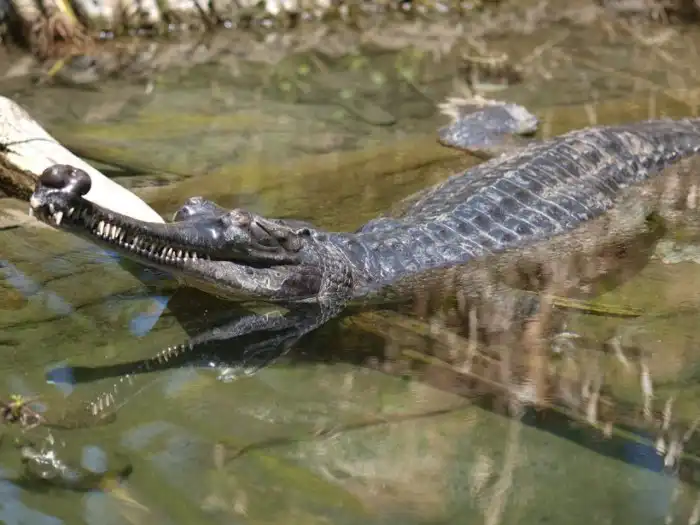 Эти крокодилы с длинной пастью, в которой находится порядка 100 острых зубов, охотятся только на рыбу. На людей они не нападают. Могут жить неподалеку от мест селения человека. Почти все время рептилии проводят в воде. В настоящий момент данному виду грозит вымирание.