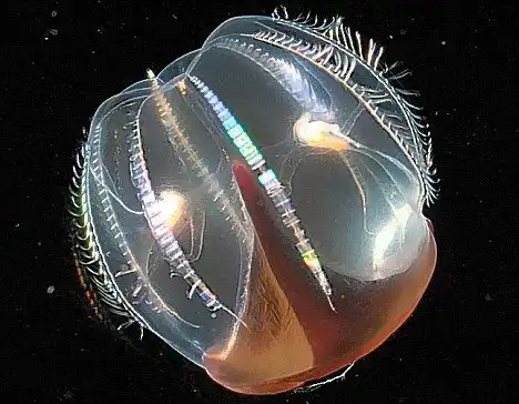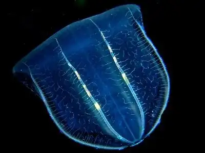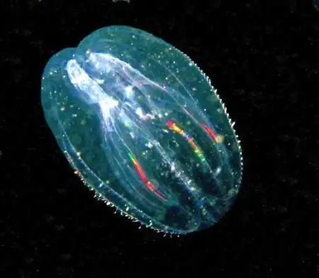 Mnemiopsis leidyi (лат. ) — гребневик, обитающий в морской воде в тёплых краях и напоминающий медузу. Внешне мнемиопсисы легкие, прозрачные, с юбочками-лопастями и гребными пластинами. У них нет мозга, сердца, скелета, зато есть нервная система, орган равновесия и способность к люминесценции. Мнемиопсис – хищник, питающийся зоопланктоном, икринками, личинками рыб и моллюсков. На свету переливается яркими цветами, ночью придает морским волнам желтоватое люминисцентное свечение. По самым последним данным ученых гребневик может быть одним из древнейших живых созданий на планете Земля.