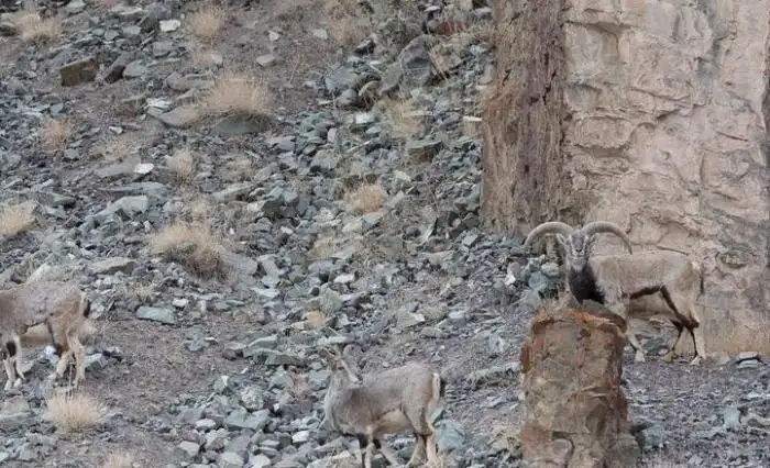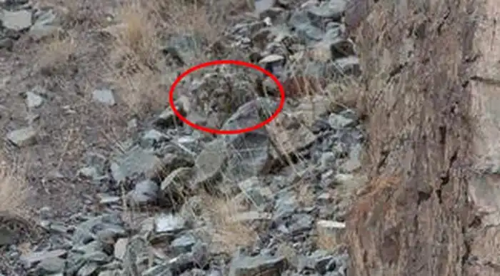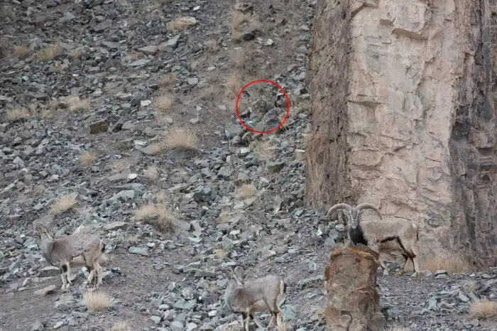 Снежные барсы являются прирожденными мастерами маскировки, и это умение они постоянно используют во время охоты. Чтобы понять, насколько искусно может спрятаться снежный барс, взгляните на это фото и попытайтесь найти затаившегося хищника, поджидающего свою жертву.