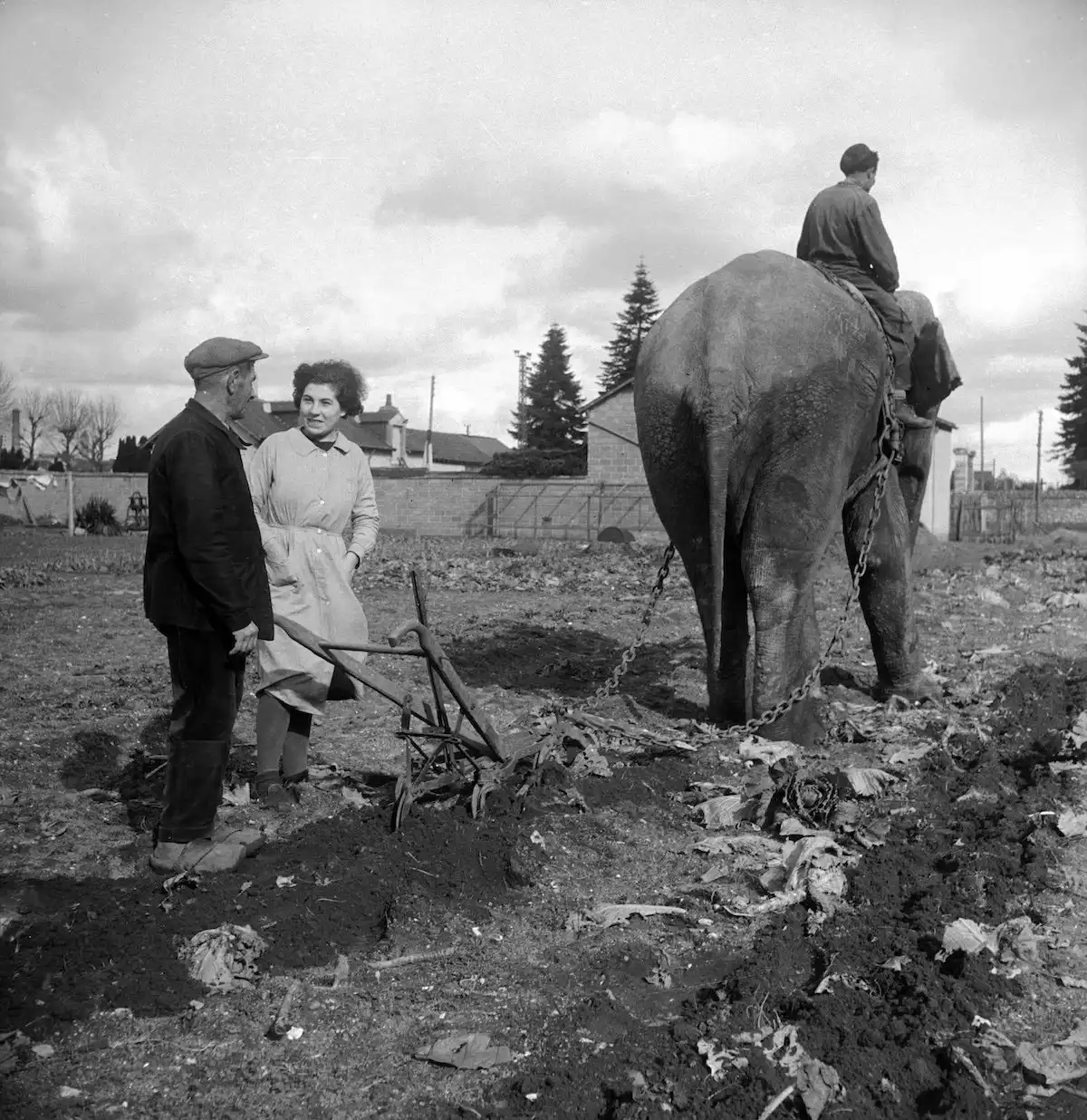 Слон из цирка Амар тянет плуг в поле оккупированной Франции, 1941 год.