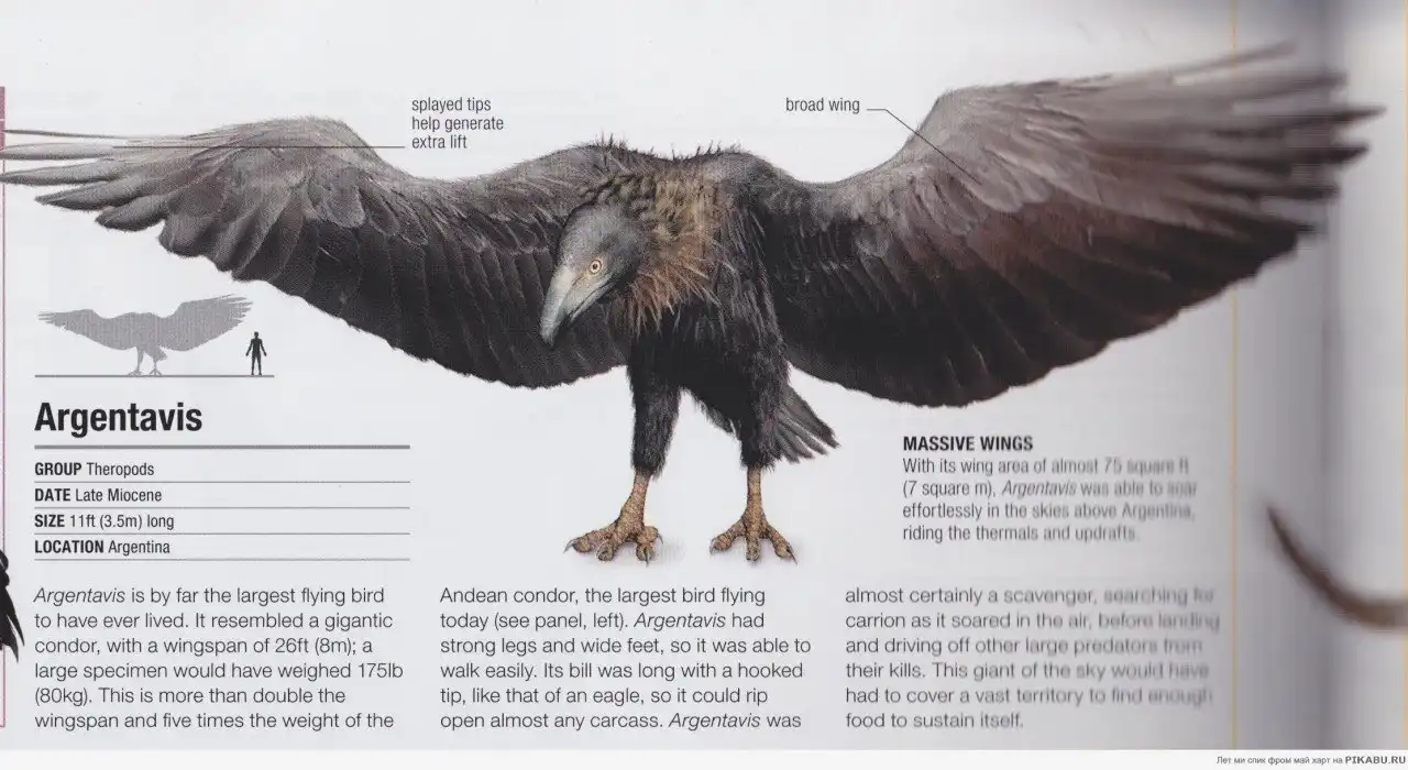 А теперь Аргентавис — самая большая летающая птица за всю историю Земли.