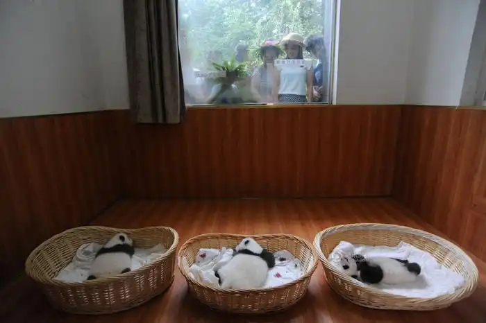 В китайском научно-исследовательском центре Ya’an Bifengxia Giant Panda Breeding, который занимается вопросом сохранения популяции панд, родилось 10 малышей и сотрудники центра рушили устроить своеобразные смотрины. Детеныши панд в возрасте от 2 недель до 2 месяцев пришлись всем по душе, и от них просто нельзя было отвести взгляд.