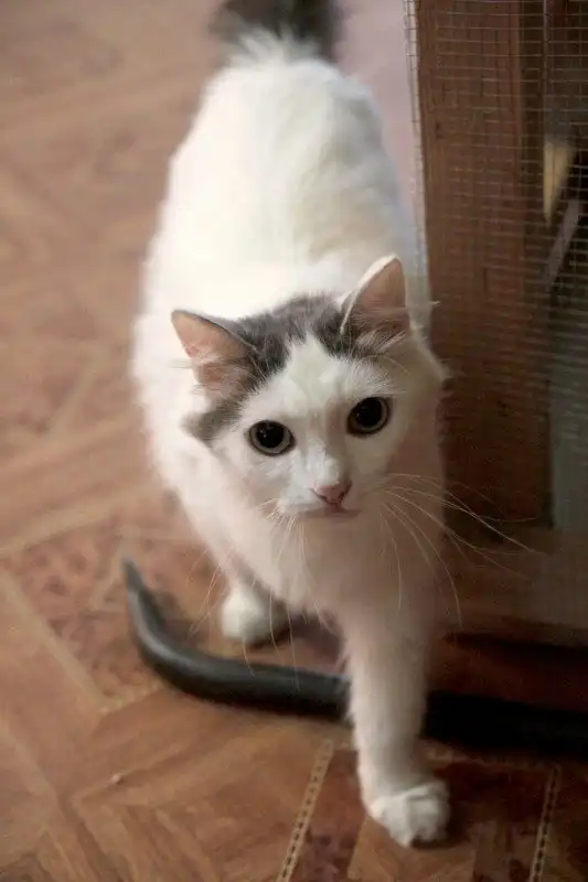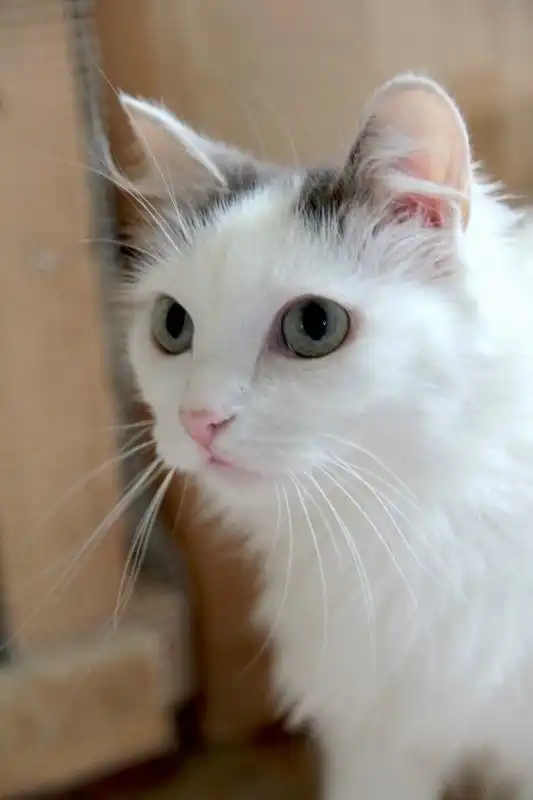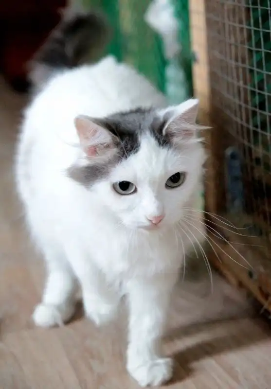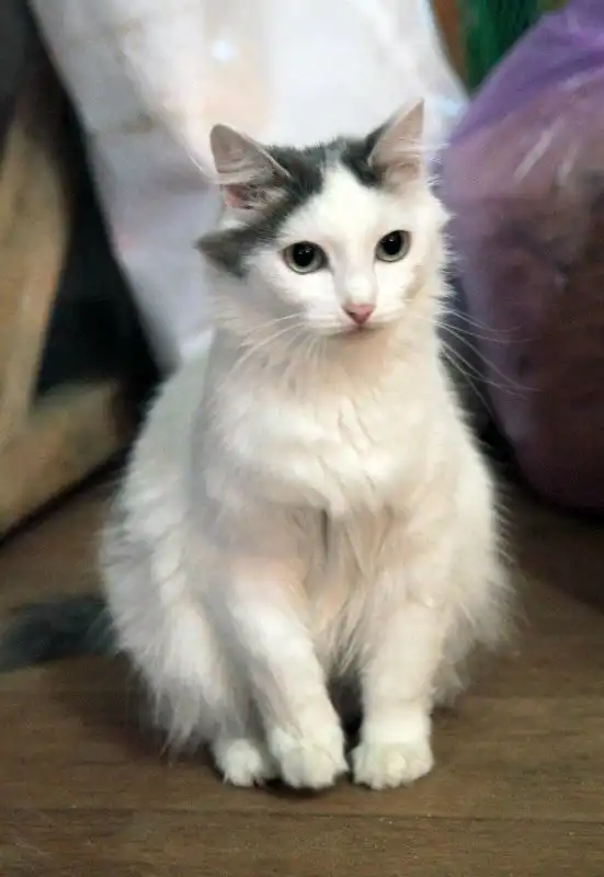 Фиона - милая беленькая кошечка с серыми пятнышками, полупушистая, с бирюзовыми глазами, крупненькая для кошечки. Найдена на улице. Возраст кошечки примерно 2 года. Очень мягкая, уютная, домашняя, обожает внимание и ласку, на все готова ради того, чтобы ее прилааскали и погладили. Хорошо уживается с другими кошачьими. Питается готовыми кормами, пользуется лотком. Стерилизована.
