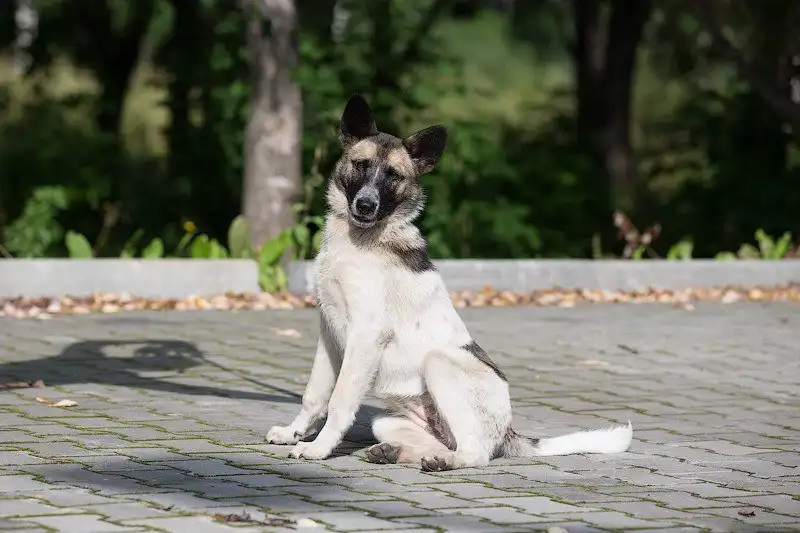 Грета - молодая собака, 7мес. Будет среднего размера, чуть ниже колена. Очень подвижная и ласковая, не любит одиночества. За время скитаний успела оббежать полгорода от пл.Ленина до Степановки.