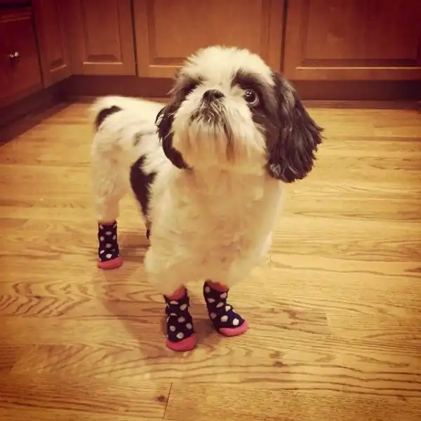 Осенью как никогда хочется укутаться в тёплый плед и смотреть любимые сериалы с чашкой горячего какао в руках и тёплых шерстяных носочках на ногах. Но не стоит забывать, что братья наши меньшие тоже мёрзнут и они были бы очень даже не против получить в подарок тёплые носочки жизнерадостной расцветки. Но к категории любителей вязаных изделий относятся только собаки, ведь кошки слишком своенравны, да и чувство юмора у них хромает.