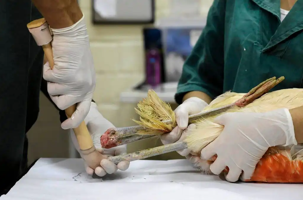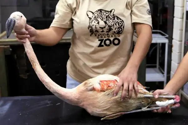 Врачи из бразильского зоопарка были вынуждены ампутировать фламинго всю ногу, чтобы предотвратить распространение инфекции.