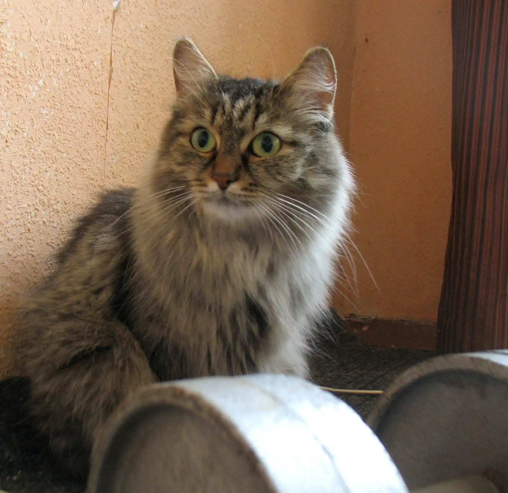 Кошка была подобрана на улице, хозяев найти не удалось. Возраст примерно 2-3 года. Очень красивая, пушистая. Характер - ласковый, общительный.