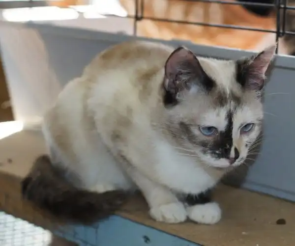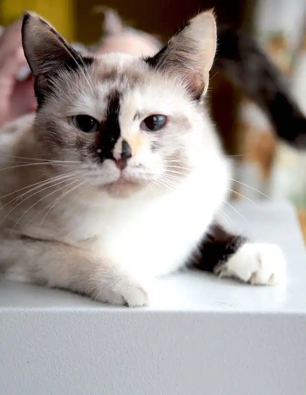Мозаика - милая миниатюрная кошечка, помесь с пойнтовыми, расположение темных пятнышек совершенно невероятное. Возраст кошечки 1,5-2 года. Доброе, ласковое животное, немного побаивается новых знакомых. Отлично ладит с другими кошачьими. Питается готовыми кормами, пользуется лотком. Стерилизована.