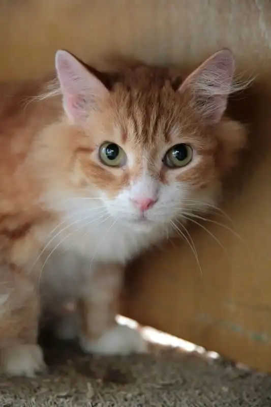 Мускат - пушистый рыже-белый котик, возраст примерно 5 лет. Жил в большом кошачьем коллективе, его хозяйка умерла. Очень ласковое, громкомурчащее создание, добрый, милый, хорошо уживается с другими животными, обожает людей и внимание к себе. У Мусика удалена часть зубов, но он отлично справляется и с влажным, и с сухим кормом. Иногда из-за отсутствия зубов у него торчит язычок, но это нисколько не портит внешности котика. Мус отлично пользуется лотком, кастрирован.