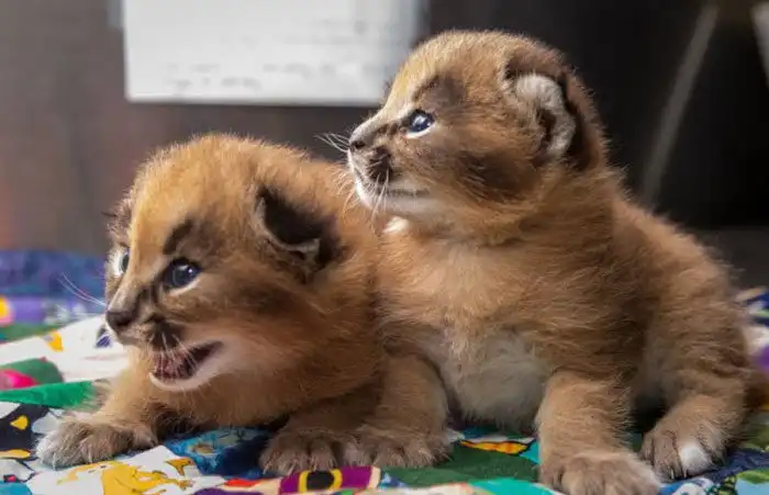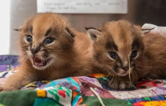 Не так давно у пары каракалов, степных рысей, живущих в зоопарке Орегона, родились два милых котенка, и теперь пришло время показать малышей публике, что сотрудники зоопарка сделали с превеликим удовольствием.