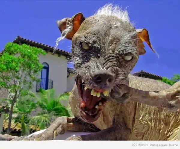 Собаки Сэм и Квазимодо (обладатели приза самая уродливая собака)Уже 15 лет в Калифорнии проводится необычные соревнования, на которых победителями становятся самые некрасивые собаки, имеющие врожденные дефекты. В этой битве можно отметить трехкратного чемпиона турнира – пса по кличке Сэм, который, несмотря на свою внешность, прожил 15 счастливых лет вместе со своими хозяевами. Сэм – это китайская хохлатая, которая всю жизнь боролась с раком.