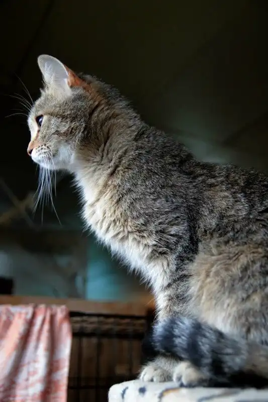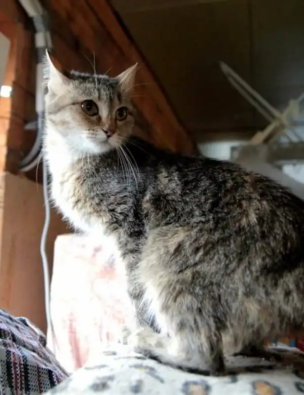 Хельга - полосатенькая кошечка небольших размеров, полоски с рыжинками. Возраст кошечки примерно 1 год. Найдена на улице. Милая, добрая, скромная девочка, ласковая, но ненавязчивая. Питается готовыми кормами, пользуется лотком. Стерилизована.