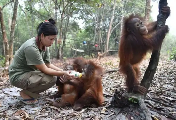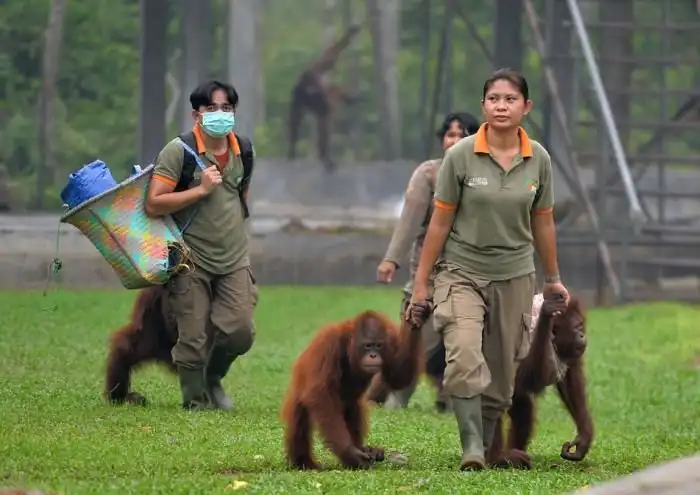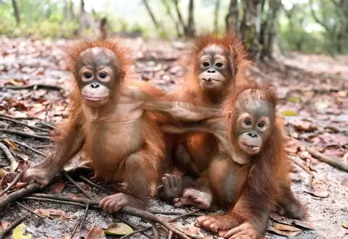 Из-за лесных пожаров, бушующих в Индонезии, зоозащитникам пришлось вывозить из лесов сотни диких животных, места обитания которых были уничтожены пламенем. Среди эвакуированных животных были и 16 детенышей орангутана, которых поселили в специальном центре на острове Калимантан. Милые приматы очень быстро освоились на новом месте и, судя по всему, им здесь нравится. Малыши весело проводят время и уже привыкли к людям, а потому охотно позируют перед объективами фотокамер.