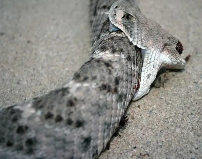 Наверняка вы слышали о том, что даже будучи обезглавленной, ядовитая змея все еще остается опасной в течение некоторого времени (примерно получаса). Очередным тому доказательством стал случай, который недавно произошел с одним фермером из Юго-Восточной Аризоны. Мужчина обнаружил гремучую змею на своем ранчо, которая в этих краях считается серьезным вредителем и решил ее убить. При помощи лопаты он обезглавил пресмыкающееся и оставил его лежать на земле, а спустя 15 минут решил закопать труп, именно в этот момент и произошло самое интересное. Лопатой фермер подобрал тело убитой им змеи, а потом стал подбирать голову, в тот момент, как тело коснулось головы, змея тут же вонзилась в него зубами и выпустила яд.
