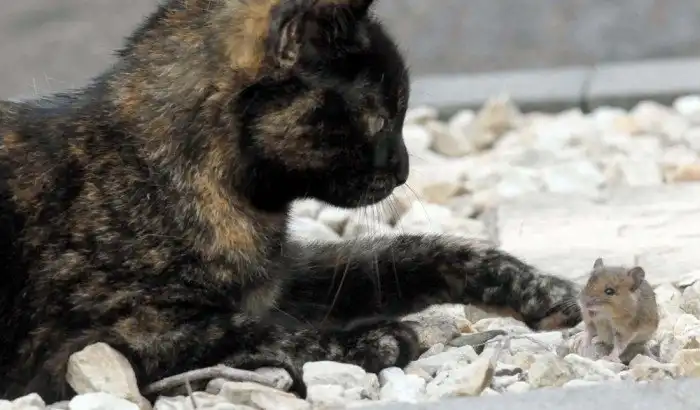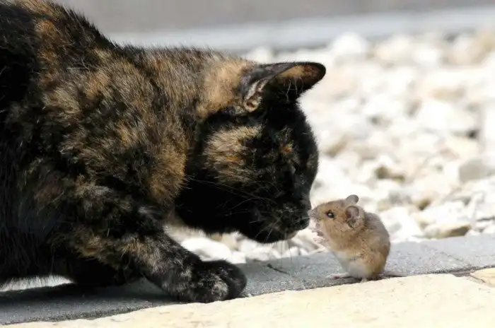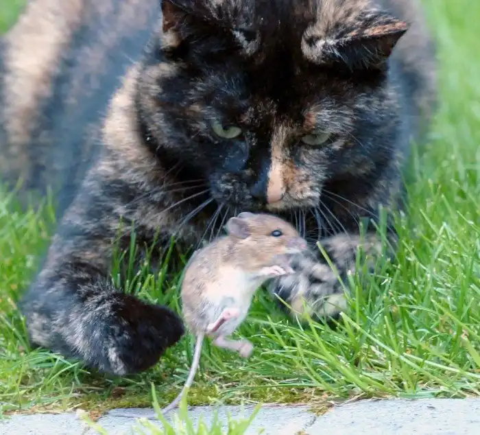 Житель Ирландии Пол Милей взял к себе домой кота из приюта и однажды застал его за весьма необычным занятием. Тот поймал мышь и начал с ней играть, но игра эта была совершенно не такой, как игра охотника и его добычи, а как игра обычных друзей. В течение 20 минут кот развлекался с мышкой, аккуратно переносил ее зубами на новое место, а потом они попросту разошлись каждый по своим делам. Удивительно в этой истории еще и то, что сама мышь имела не одну возможность убежать, но не стала этого делать.