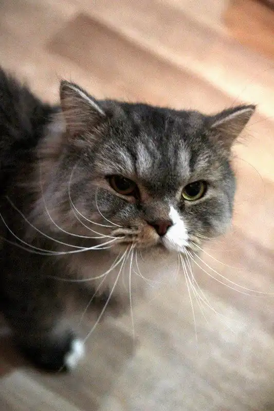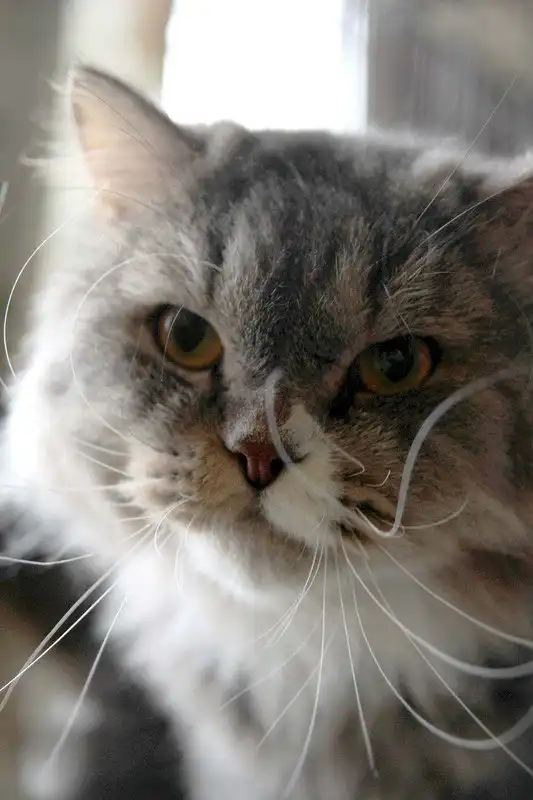Казимир - длинношерстный кот гигантских размеров, серо-голубой табби, возраст примерно 2 года. От кота отказались хозяева в связи с отъездом, с их слов помесь британца и персидской кошки. Кот дружелюбен с людьми и другими кошачьими, но иногда проявляет свой британский характер, если у него нет настроения, сопротивляется играм и ласке. Очень эффектный, необычной внешности. К нам приехал закатанный, была произведена гигиеническая стрижка, сейчас кот в процессе обрастания, то есть сейчас он еще не во всей красе. В дальнейшем ему понадобится от хозяев тщательный уход за шерстью. Кот питается готовыми кормами, пользуется лотком. Кастрирован.
