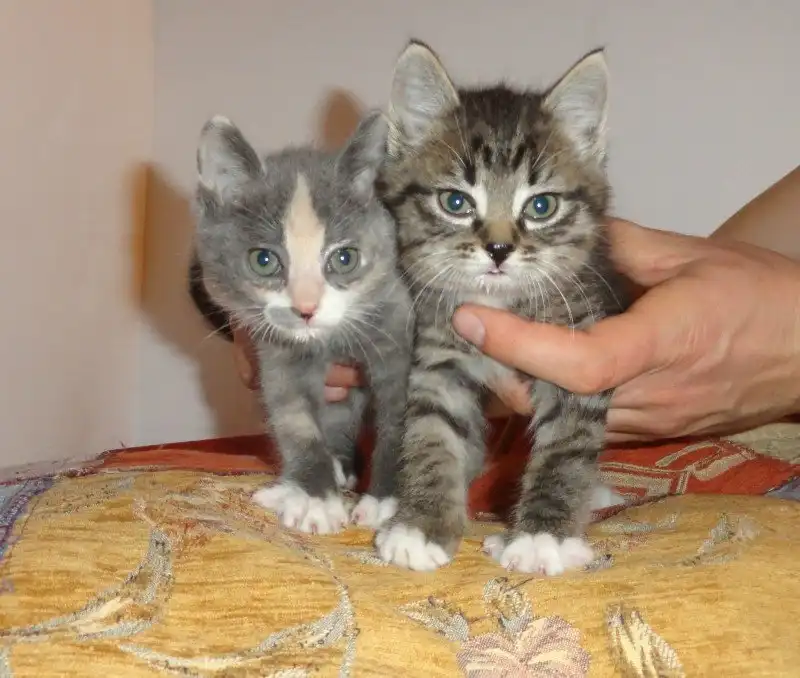 Малышей оставили в коробке возле вет. клиники, на вид им 1 -1.5 мес. Мальчик полосатый, возможно будет пушистым, девочка дымчатая с кремовыми пятнами и белыми носочками. Питаются детским молоком и паштетом для котят, лоток осваивают, уже почти без промахов! Котята ждут своих ответственных и надежных хозяев, с постоянным местом жительства. Доставка, испытательный срок.