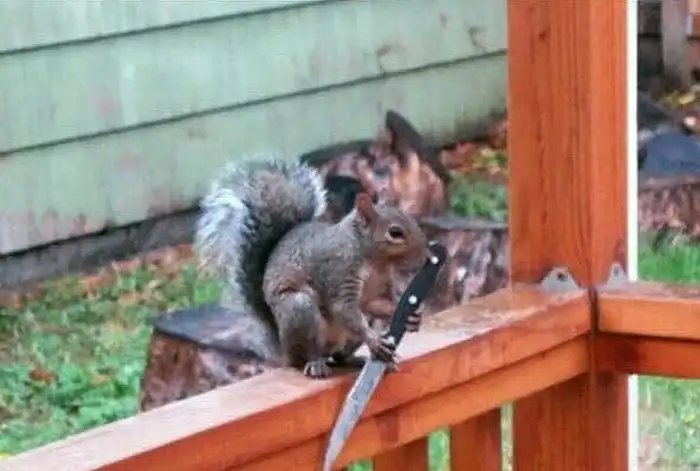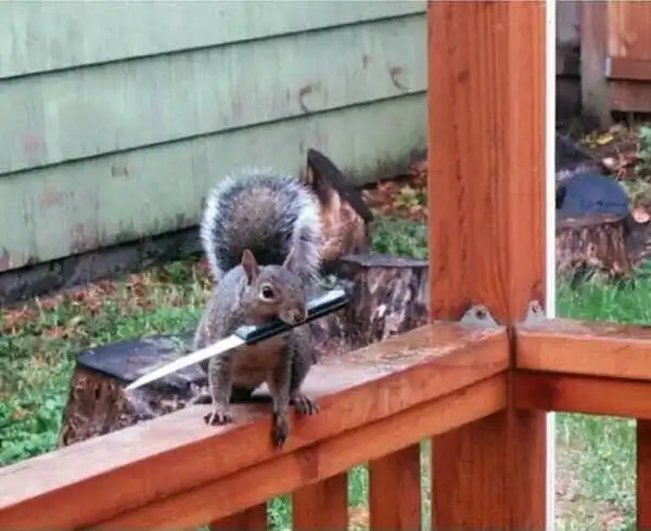 Парень вышел утром на веранду, чтобы покормить белочек и увидел следующую картину.