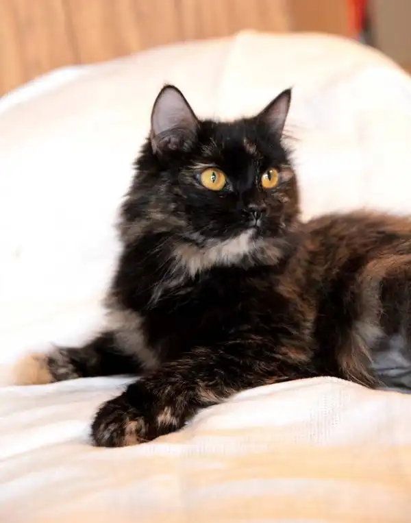 Лиза - пушистая кошечка черепахового окраса, возраст примерно 2 года. От кошечки отказались хозяева из-за появления ребенка. Не знаю, как они с ней обращались, но она с недоверием относится к людям, привыкает постепенно, всегда при общении с ней такое ощущение, что она ждет от человека чего-то плохого. Но не агрессивна, просто побаивается. Очень хочется найти ей добрых, терпеливых хозяев, к которым она привыкнет и будет доверять. По характеру спокойная, ненавязчивая Питается готовыми кормами, пользуется лотком. Стерилизована.