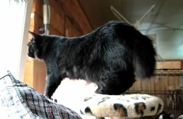 Сильвер - пушистый джентльмен черного окраса, очень красивый, с яркими желтыми глазами. Возраст котика примерно 2 года. Был выловлен из подвала год назад совершенно диким, не пускал первое время к себе в клетку даже для уборки, агрессировал. Постепенно привык. Сейчас хорошо идет на руки, но немного побаивается. Будущему хозяину придется запастись терпением и окончательно приучить кота доверять. Кот очень красивый и благодарный. Имеется дефект - укороченный хвост, причина нам неизвестна, врожденный или приобретенный. Но это совсем не портит внешности кота, напротив, придает котику индивидуальность и шарм. Кот отлично ладит с другими кошачьими. Питается готовыми кормами, пользуется лотком. Кастрирован.