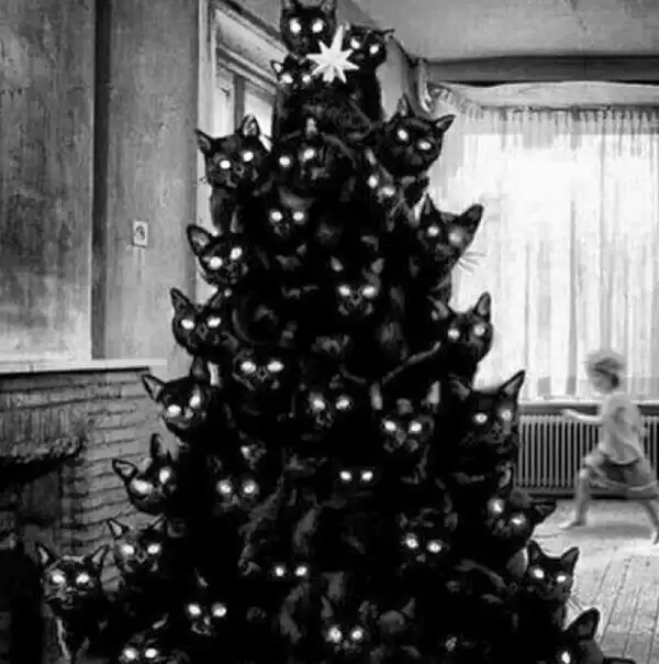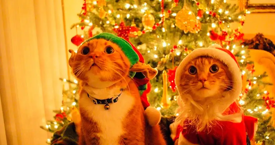 Интернет-пользователи в преддверии Нового года выкладывают в соцсети фотографии котов, наряженных в елочные игрушки и гирлянды, с хештегом #котоелка.
