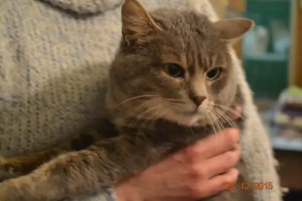 Этьен - очень красивый кот окраса голубой табби, похож на британца. Возраст кота примерно 2 года. Котик жил с хозяевами, но его бросили при переезде, и все лето он провел на улице возле подъезда. Сейчас он живет в приюте, но уличное прошлое еще не забыл. Боится громких звуков, новых людей и любых перемен. Привыкает к человеку постепенно, становится очень ласковым и благодарным. От нового хозяина потребуется терпение, чтобы котик привык и начал доверять. Очень необычное, эксклюзивное животное. Он был найден вместе с кошкой Эммой, через несколько дней после приезда в приют Эмма родила котят, и Этьен относился к этим котятам, как добрый, заботливый отец, помогал Эмме ухаживать за ними. К сожалению, фото получились не совсем удачные, котик боялся нового человека и камеры. В жизни он намного приятнее и красивее. Он отлично пользуется лотком, питается готовыми кормами. Кастрирован.