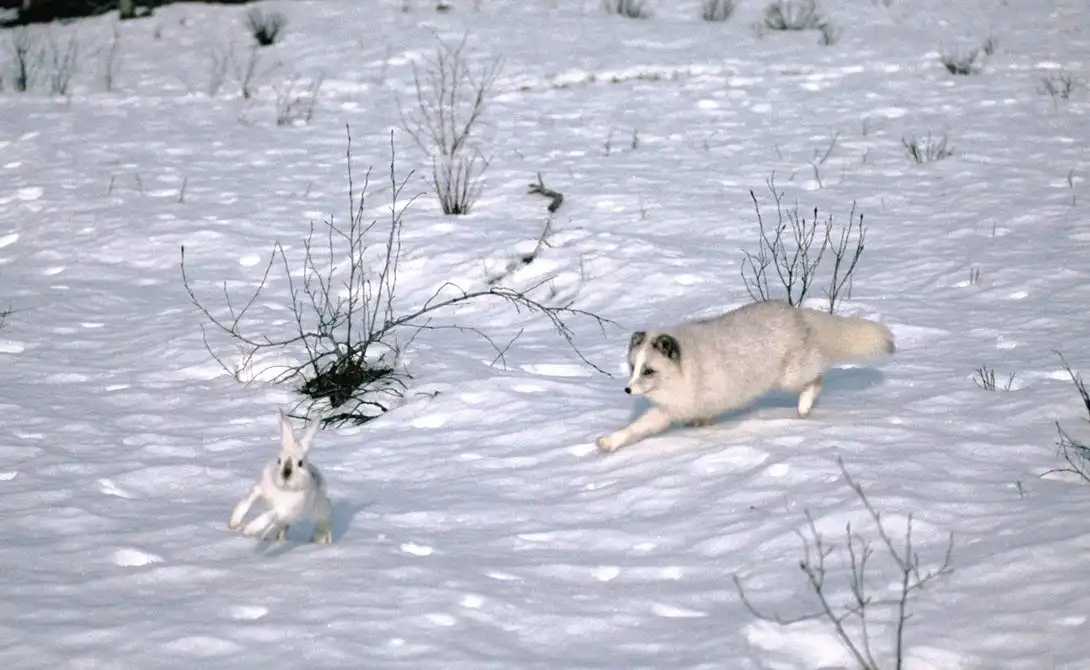 Арктические зайцы встречаются в основном на севере Канады и Гренландии — и эти ребята не двигаются на юг с наступлением холодов. Их популяция довольно многочисленна, поскольку за Полярным кругом встречается не так много хищных животных, способных развить скорость выше 80 км/ч — а именно так будет улепетывать от опасности арктический заяц. Когда температура становится смертельно низкой, животные сбиваются в стаи до ста особей. Тесно прижимаясь друг к другу, они генерируют достаточное количество тепла.