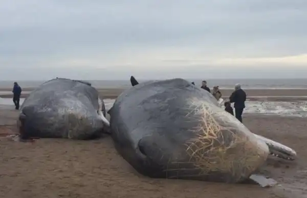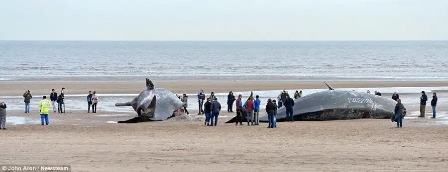 Кто-то оставил надписи «Фукусима» «RIP» и «Меня погубил человек» на тушах кашалотов на побережье в Линкольншире.