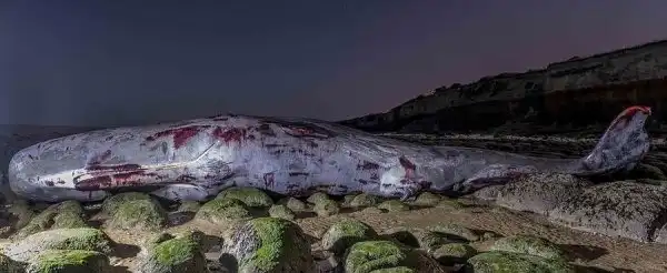 Пятый по счёту кит был обнаружен недалеко от того места, где незадолго до этого были найдены туши ещё двух кашалотов.
