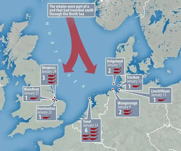 Есть предположение, что кашалоты заплыли в Северное море со стороны Норвегии. Однако, остаётся непонятным, почему 5 туш кашалотов оказались на побережье Великобритании, а остальные 12 – в Германии и Нидерландах.