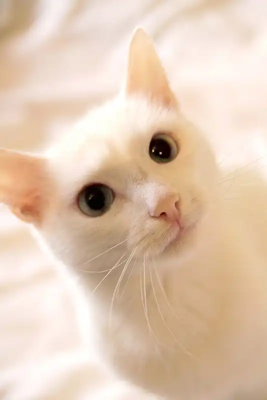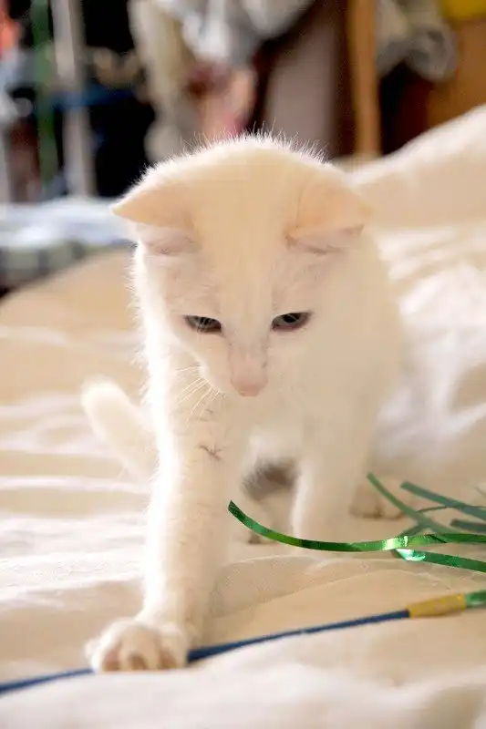 Амир - белый красавчик изящного телосложения с прекрасными голубыми глазами. На первый взгляд котик абсолютно белый. но, если приглядеться, можно увидеть на кончиках ушей и хвостика очень бледные персиковые пойнты. Котик попался на улице в лапы собакам, до сих пор на шее остались шрамы. Очень веселый, игривый, очень ласковый и добрый, дружит со всеми, и с людьми, и с кошками и котами. Чудесный характер, очень красивая внешность. Питается готовыми кормами, пользуется лотком. Кастрирован.