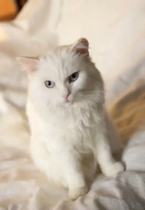 Фарфор - крупный белоснежный длинношерстный кот с голубыми глазами, возможно помесь с персом. Возраст кота примерно 2 года. Найден в подъезде, был подстрижен. Кот очень ласковый и уютный, в меру игривый, очень благодарный за внимание. Шерстка мягкая и тонкая, требуется периодически тщательное прочесывание. У котика отморожен кончик одного уха. В целом же кот очень эффектный, он станет украшением в любом доме. Питается готовыми кормами, пользуется лотком, отлично уживается с другими кошачьими. Кастрирован.