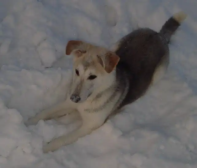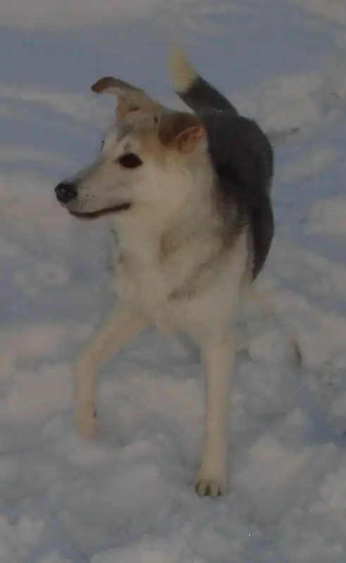 Лола - молодая собака, девочка, возраст примерно 7 мес. Немного похожа на лайку, размер в холке 50 см. Очень умная, сообразительная, все схватывает на лету, уже знает некоторые команды, не лает по пустякам. Была подкинута в кошачий приют, сейчас живет у нас на передержке вместе с кошками, с ними ладит, не агрессивна к кошкам, но постоянно пытается с ними играть. Отдается в теплое помещение, так как к холоду не привыкла. Конечно, в дальнейшем может быть приучена и к жизни в будке или вольере. Можно также и в квартиру как компаньона, очень легко обучается и дрессируется, любит людей, обожает играть с детьми, учится ходить на поводке. Стерилизована.