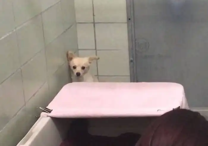 В США в приют для животных Marin Humane Society доставили самку терьера, которая испугалась нового места и забилась в угол. Животное отказывалось покидать свое «убежищк», и тогда сотрудники приюта пошли на хитрость и показали ей щенков.