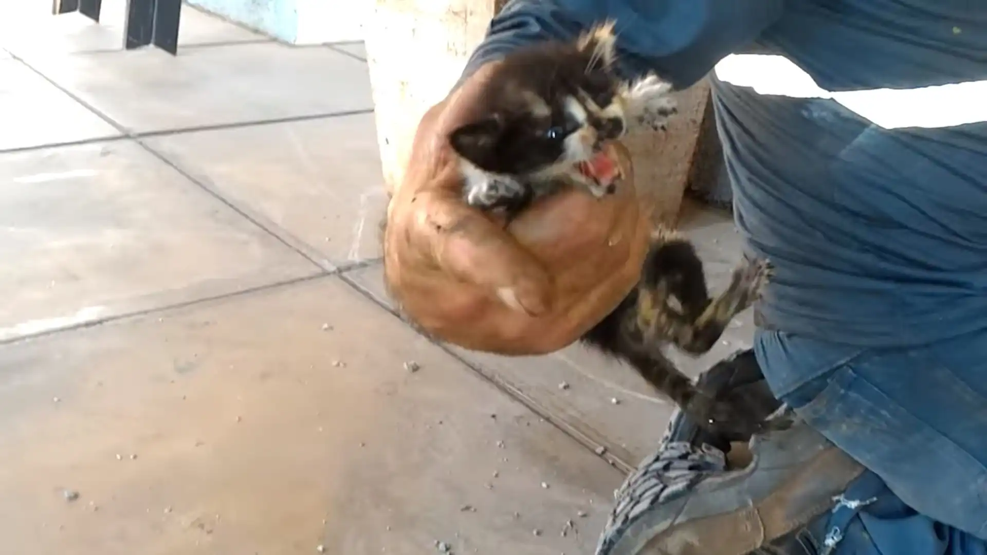 Мама-кошка почувствовала материнский инстинкт и спрятала новорожденных котят на крыше офисного здания. После чего, произошел непонятный случай, и котята оказались в системе водопровода. Малыши провели в трубе около недели . Но после того как рабочие офисного здания, где случило это несчастье, услышал писк похожий на мяуканье. Начальство дало разрешение спасти котят во что бы то ни стало и сломать систему водопровода.