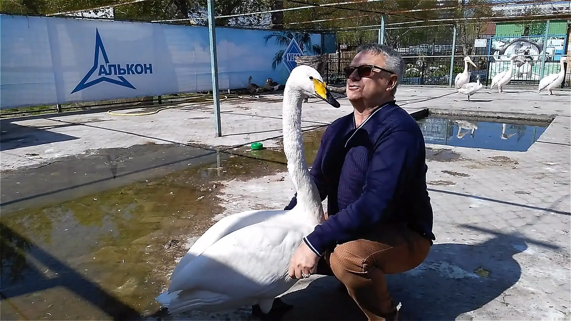 Директор Барнаульского зоопарка Сергей Писарев снял видеоролик, на котором лебедь Жорка, по его мнению, жалуется на розовых пеликанов.