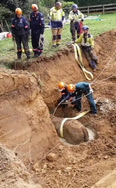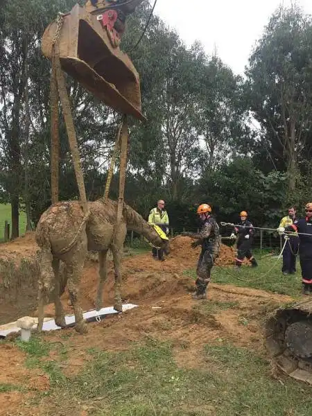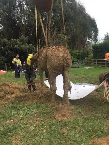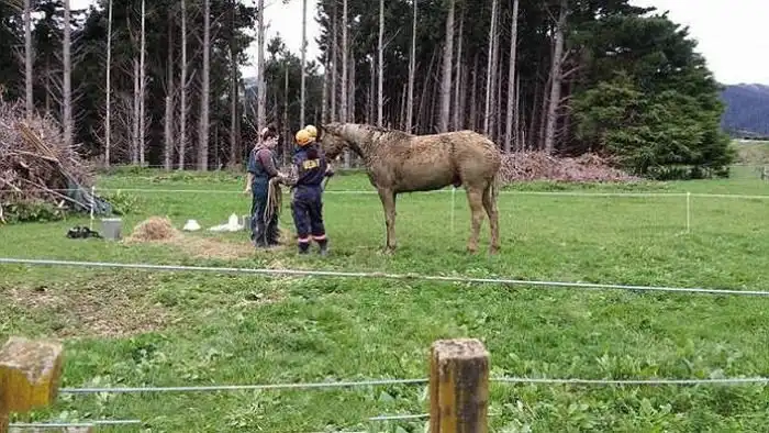 На прошлой неделе неподалеку от Веллингтона, столицы Новой Зеландии, развернулась спасательная операция, в ходе которой лошадь доставали из двухметровой ямы, наполненной грязью. Упав в яму, животное увязло в болоте и не могло самостоятельно выбраться. На место происшествия были вызваны спасатели, которым потребовалось 4 часа времени и экскаватор, чтобы вызволить животное из плена. Лошадь оказалась в полном порядке, сейчас ее здоровью ничего не угрожает.