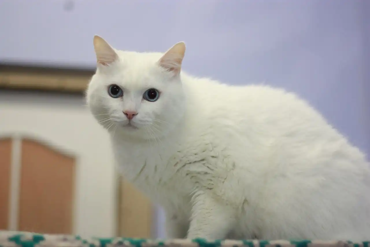 Этот белоснежный и голубоглазый красавец ищет семью и верных людей, которых он будет радовать своим пушистым бочком. Кот, мечтающий о своем диване, на котором будет лежать кверху пузиком.