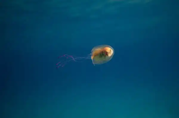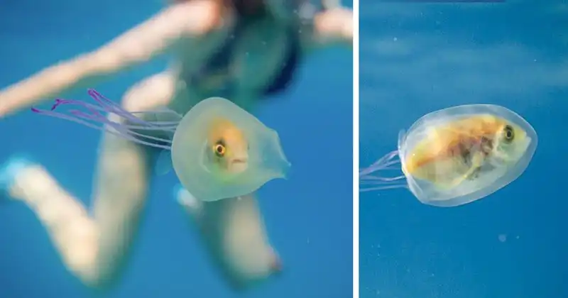 Попала в ловушку: удивительная фотография рыбки внутри медузы
