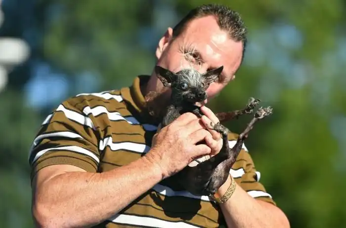 В Калифорнийском городе Петалума прошел конкурс на титул самой уродливой собаки в мире World’s Ugliest Dog Contest. Победителем конкурса стал 17-летний метис чихуахуа и китайской хохлатой по кличке Свиппи Рэмбо. Пес имеет забавный «ирокез» и слеп на оба глаза, к тому же у него постоянно высунут язык, а в повседневной жизни он носит подгузники. Хозяину собаки Джейсону Вуртцу (Jason Wurtz) вручили кубок и денежный приз в размере 1500 долларов, которые он намерен потратить на удаление опухоли, недавно появившейся во рту его питомца.