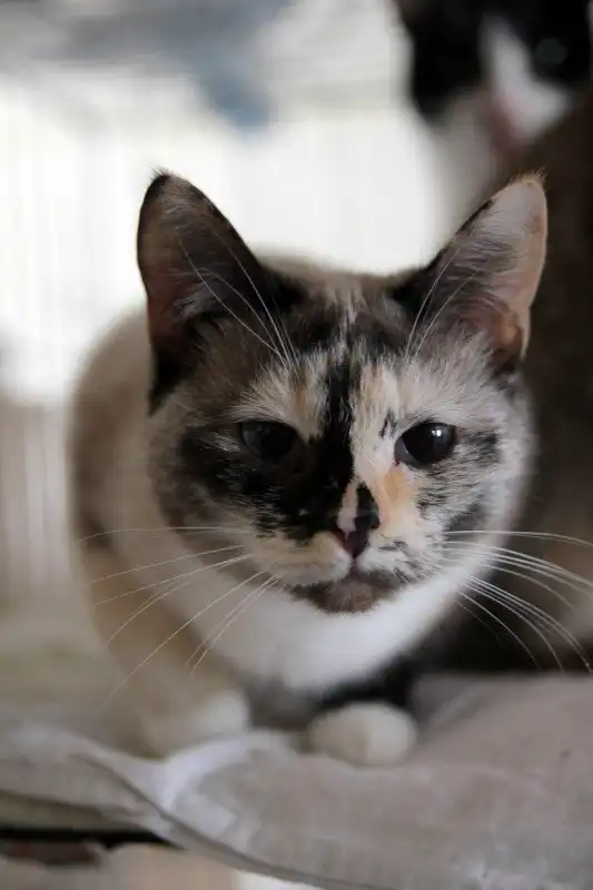 Мозаика - милая миниатюрная кошечка, помесь с пойнтовыми, расположение темных пятнышек совершенно невероятное. Возраст кошечки 1,5-2 года. Доброе, ласковое, контактное животное. Отлично ладит с другими кошачьими. Питается готовыми кормами, пользуется лотком. Стерилизована.