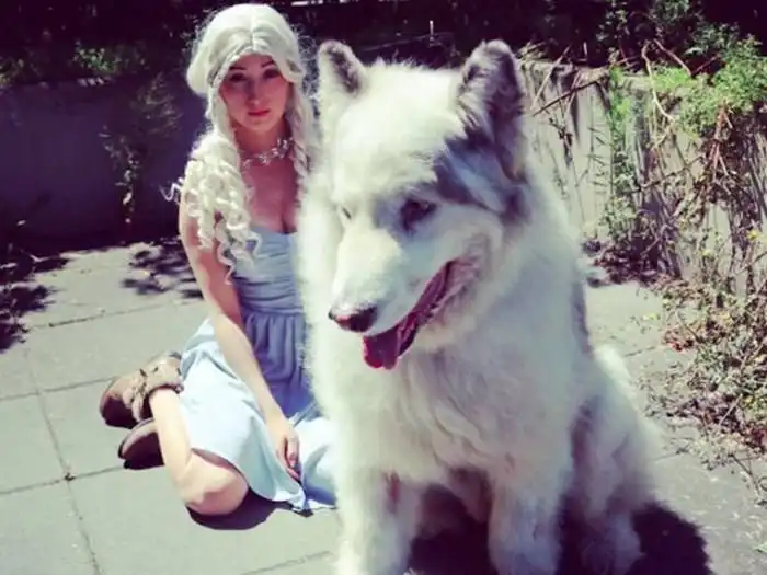 Все кто смотрел сериал «Игра престолов» помнит ужасных лютоволков, внушавших страх и ужас всем, кто с ними встречался, но мало знает, что на самом деле это были не волки. Волков сыграли собаки экзотических пород, которые внешне похожи на волков. Одной из таких собак был 10-летний аляскинский маламут по кличке Дэнни. Несмотря на свой внешний вид, Дэнни является весьма дружелюбным псом, который легко идет на контакт с людьми и поэтому зачастую участвует в различных косплей-фотосессиях.