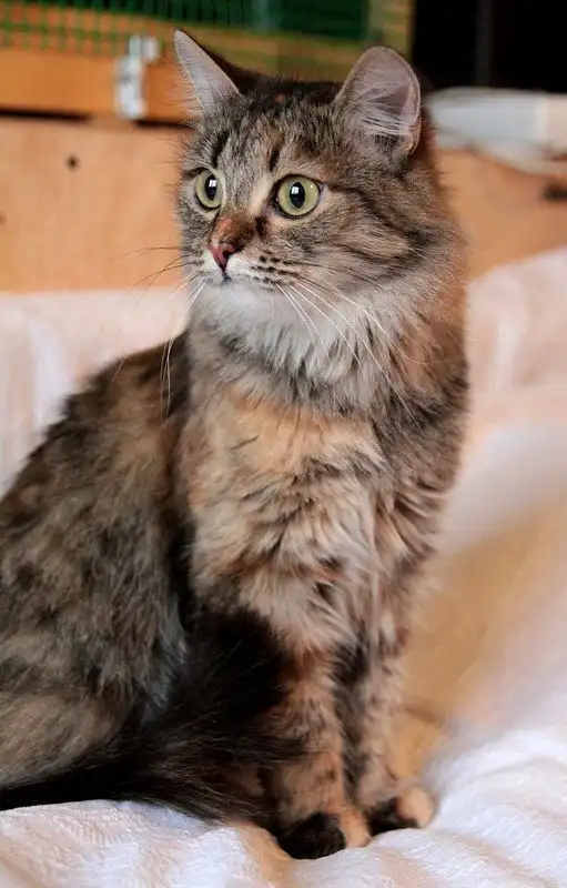 Эмма - очень красивая длинношерстная кошечка необычного окраса, полосатая с рыжими пятнами. Возраст примерно 2 года. Найдена на улице. Очень милая, добрая девочка, ласковая с людьми и другими кошачьими, приятная в общении. Питается готовыми кормами, пользуется лотком. Стерилизована.