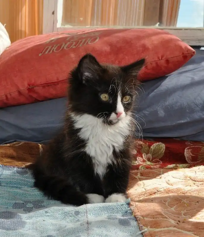 Котята 2- 2,5 месяца, все совершенно разные и по окрасу и по характеру. Черно-белая, пушистая с желтыми глазами, девочка - Катуня, названа в честь реки Катунь; самостоятельная, решительная, весёлая и смелая, отзывчивая на ласку. Четырёхцветная гладкая, сероглазая девочка - Тихоня; тихая, скромная, очень вдумчивая, аккуратная, нуждаеться в бережном обращении, вырастит в деликатную кошку. Мальчик с окрасом колор-пойнт с серо-голубыми глазами - активный, игривый, смышленый малыш, но пока еще боязливый к людям.