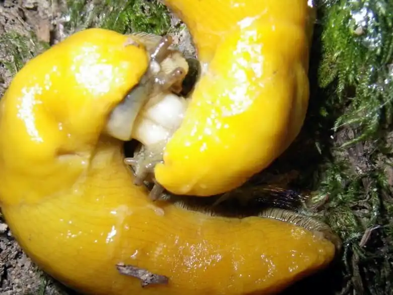 Банановые слизни водятся в Северной Америке и по цвету действительно напоминают слегка переспевшие бананы. Как и усоногие, они гермафродиты, и они сами решают, кто будет "мальчиком", а кто "девочкой". При этом пенис у слизней достигает размеров всего их тела! Когда процесс спаривания заканчивается, "девочка" откусывает пенис "мальчику", что ведет к рождению новой "девочки".